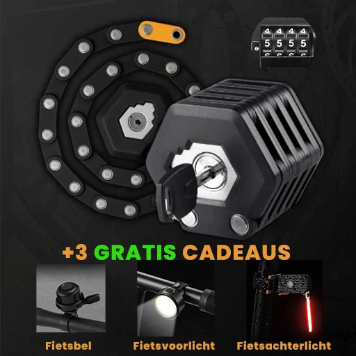 The ViiLock™ PRO is made with industrial-grade alloy steel and zinc, specifically designed to withstand various traditional bike lock destruction methods. The innovative foldable chain design allows for securing bikes around a wide variety of objects.